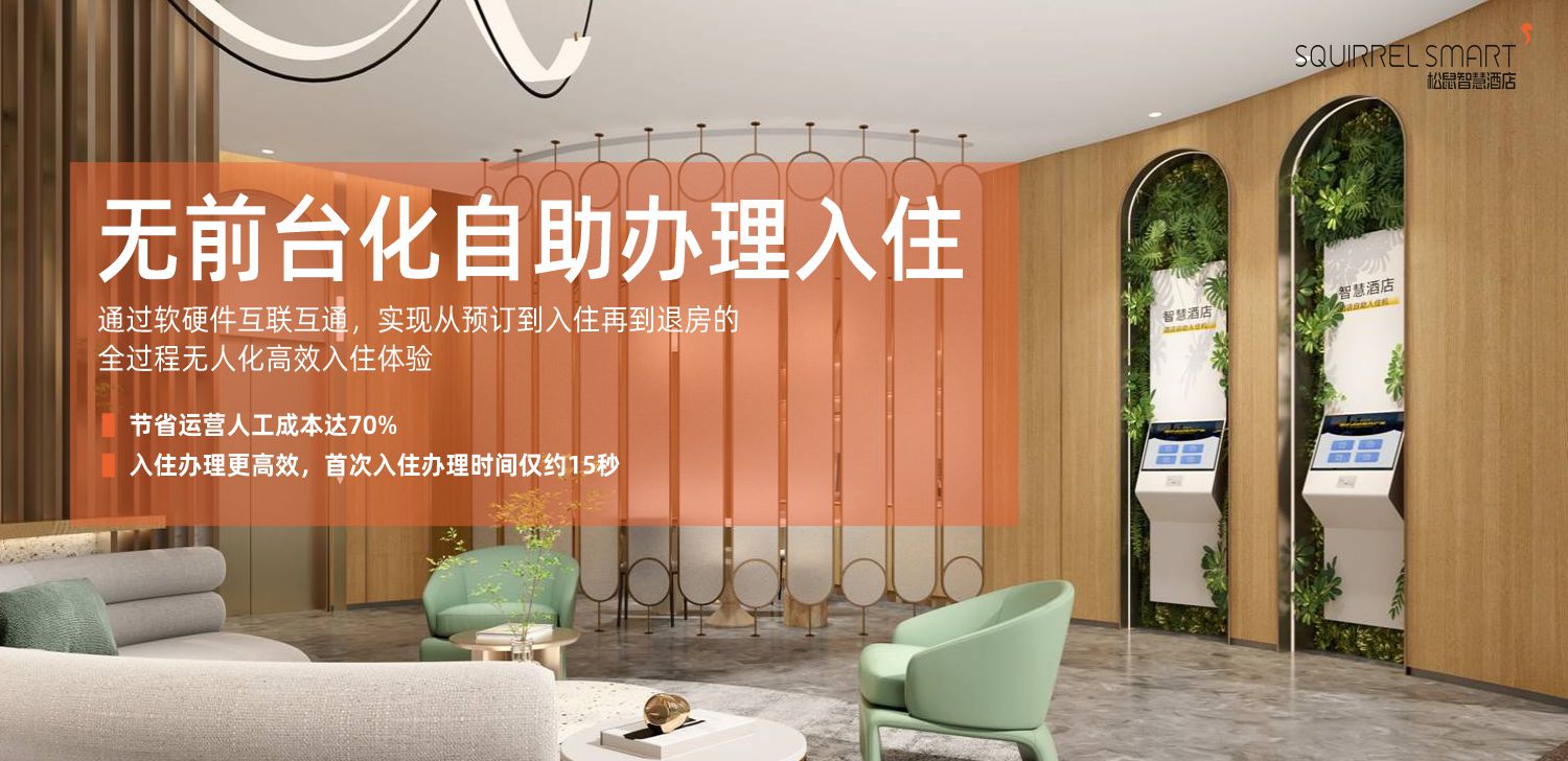 松鼠智慧酒店品牌旗下的松鼠智慧无人酒店开始践行标准化的线上预订及线下自助入住办理的这一流程实践,这一流程涵盖了从订房、自主选房、信息登记、押金房费缴纳以及退房退押金等全部流程,用户可以快速完成其间所有步骤操作。从线上预订到首次办理入住只需约15秒,而非首次入住顾客能做到5秒办理完成入住,真正做到节约顾客时间,在节假日等出行人流较大时,无需前台排队等候,极大提升顾客的入住体验感。而在疫情期间可以做到无接触,避免人员在前台过于聚集,从而有效防控疫情。